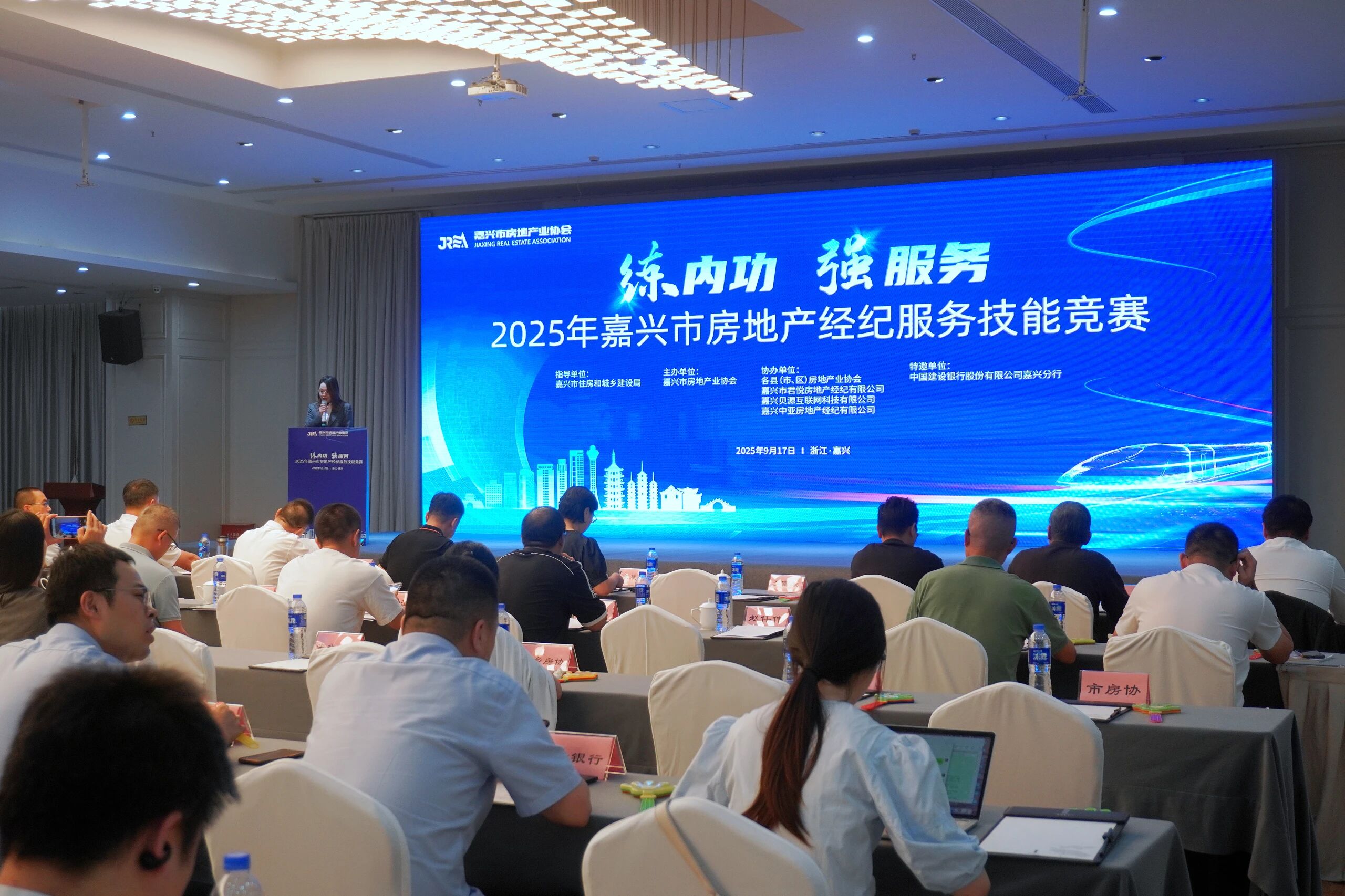 9月17日下午,2025年嘉兴市房地产经纪服务技能竞赛决赛圆满落幕。本次竞赛作为嘉兴市房地产业协会举办的第二届行业技能盛会,吸引了全市各房地产经纪机构的 12 名优秀选手晋级决赛,近百名参赛选手助威团成员及各经纪会员单位负责人到场观摩学习,共同见证行业人才的专业风采。