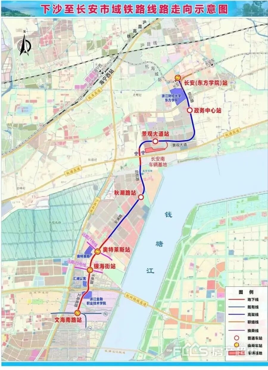 项目起于杭州城市轨道交通1号、8号线文海南路站,经下沙高教园区及大学城北单元、长安镇高新区,止于杭海城际长安站,线路全长20.8公里,其中地下段长4.9公里。