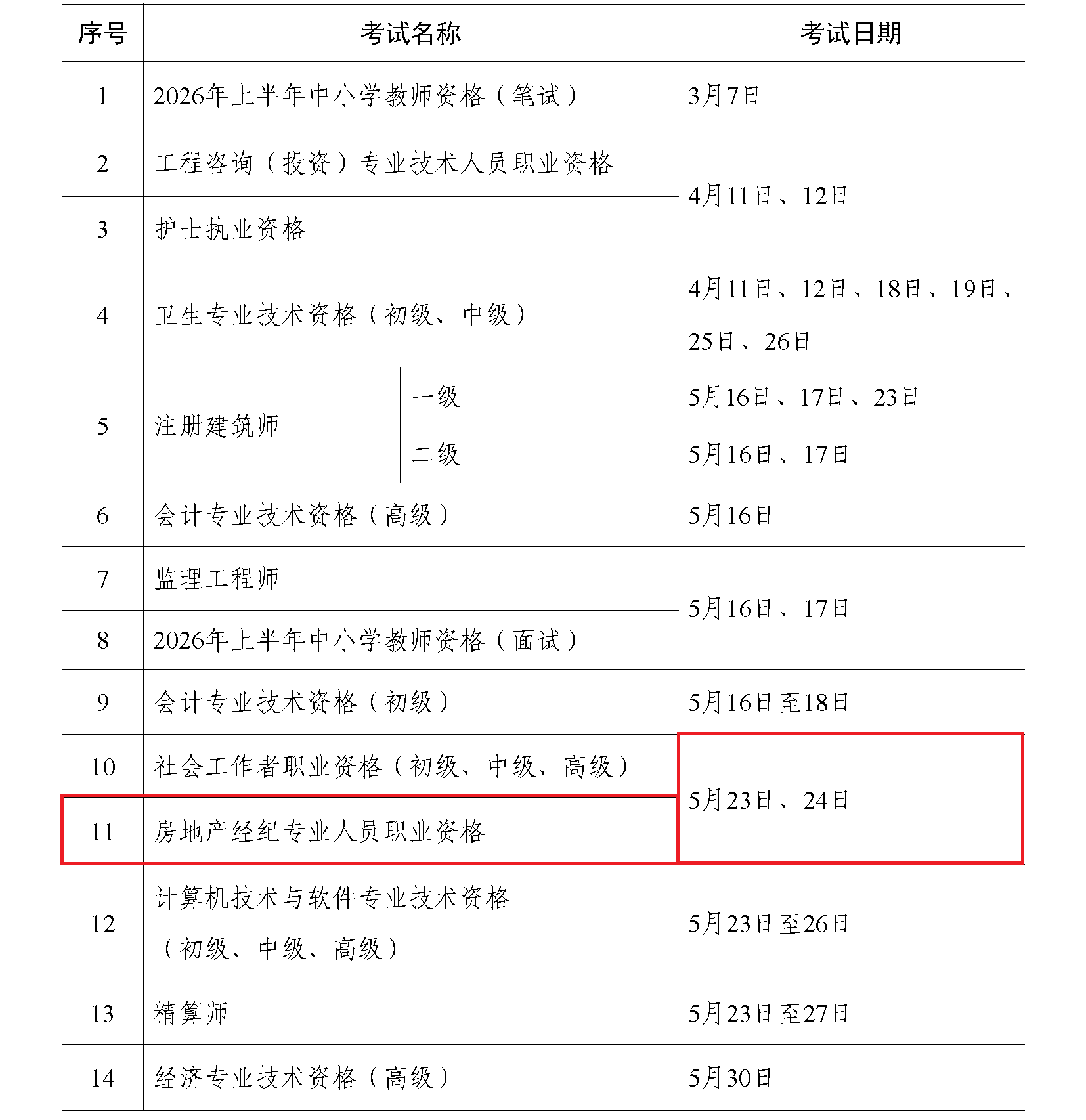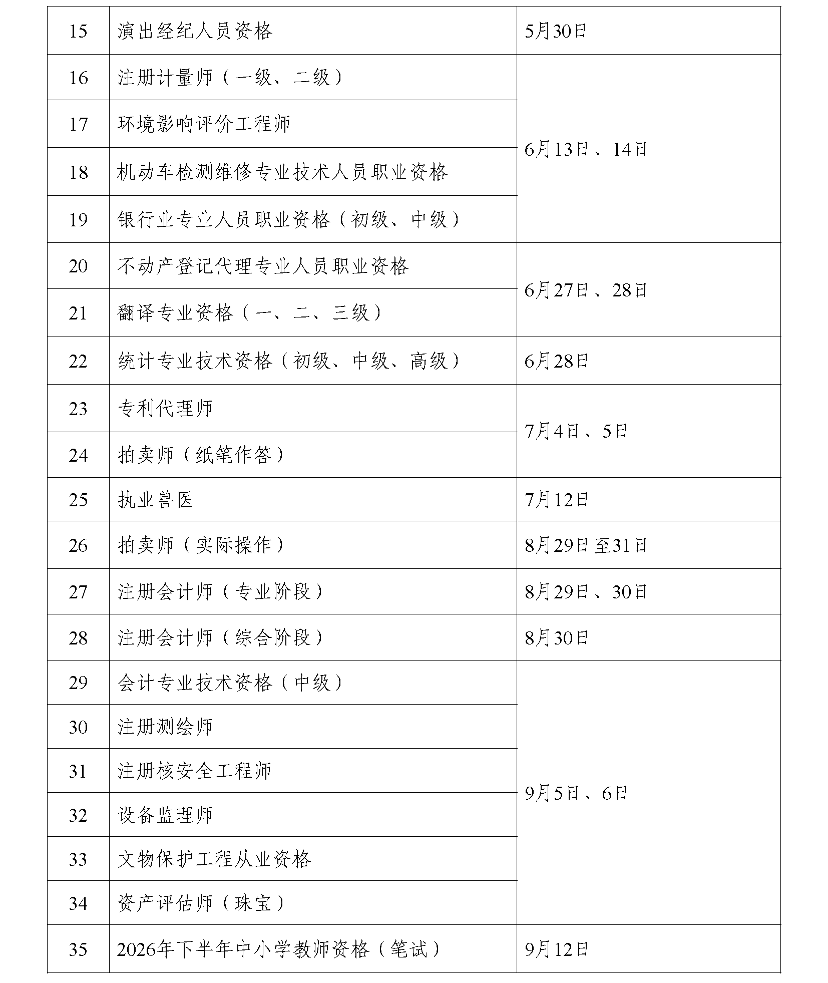 为切实做好专业技术人员职业资格考试规划与管理工作,方便广大专业技术人员参加职业资格考试,经征求有关部门同意,现就2026年度专业技术人员职业资格考试工作计划及有关事项通知如下:
