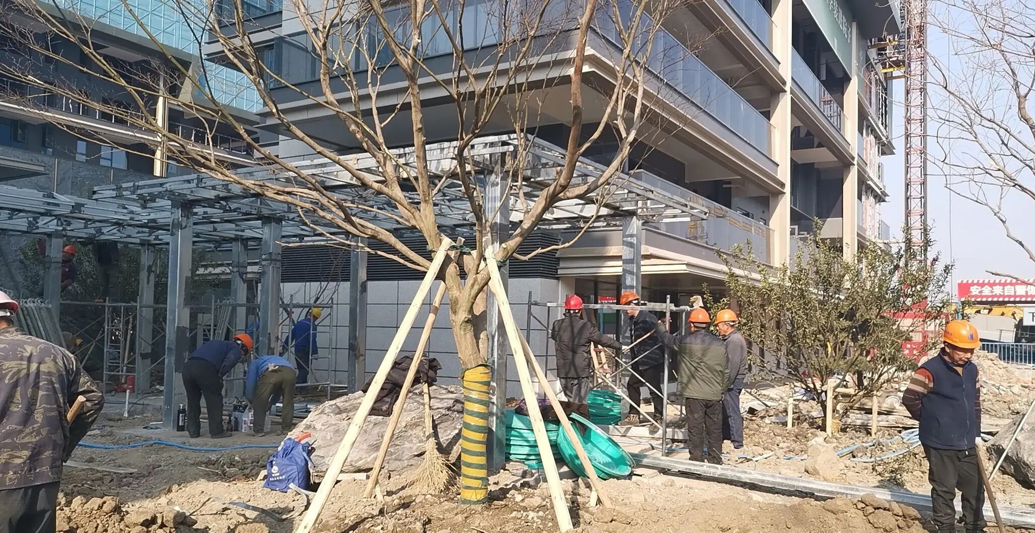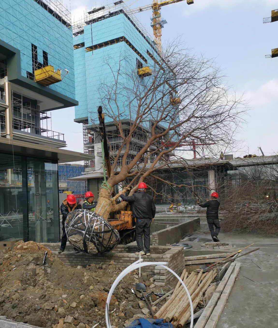 “这些景观树都是我们赴山东、安徽等地实地挑选的,每一棵都要优中选优。”项目执行总经理高爱国介绍,为了保障景观品质,团队提前数月对接苗木基地,对黑松、罗汉松、弯杆乌桕、羽毛枫等树种进行实地考察,记录生长状态、树形特征,确保每一株苗木都符合设计标准。