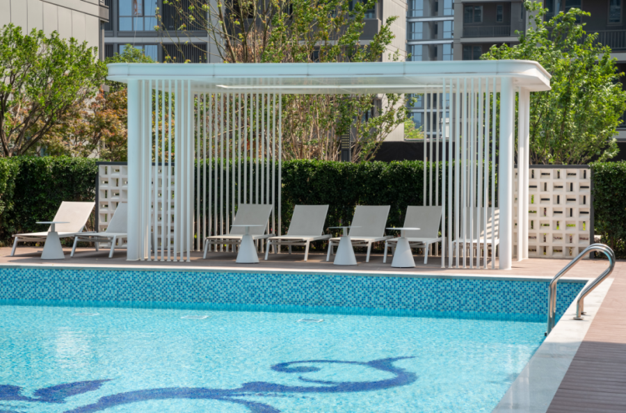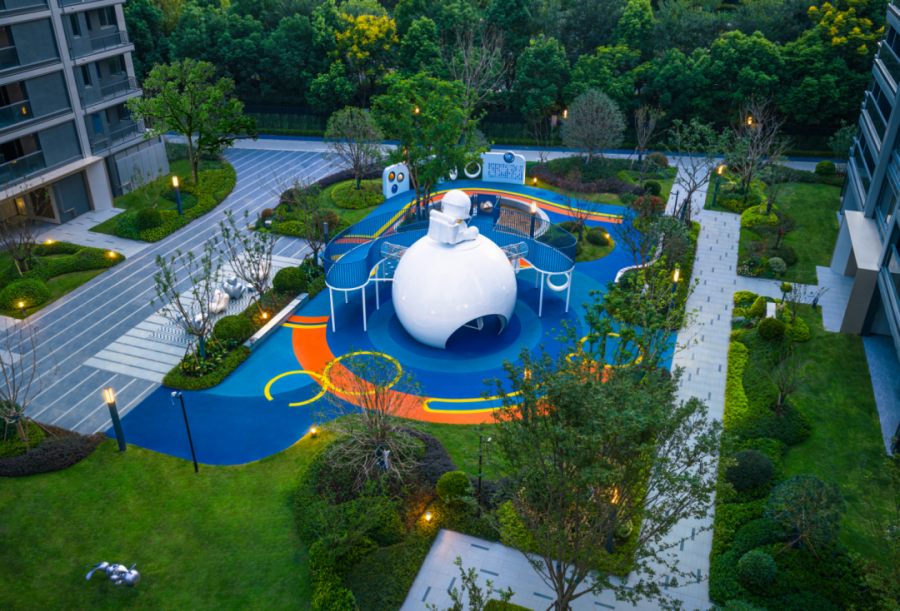 引入“原地度假”理念,打造艺术戏水池、阳光草坪、林下吧台等九大园林景观,700米环形夜光跑道、极限运动场、羽毛球场地等运动场景全覆盖,十步一景,让日常即是度假;八大全会所化架空层,涵盖运动、社交、亲子、阅读、棋牌等多元场景,甚至打造了宠物乐园、太太花园,全方位覆盖青年及家庭的生活需求与情绪价值。