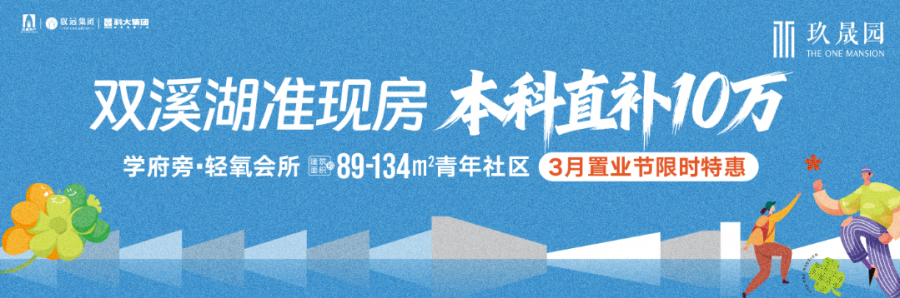 双溪湖青年置业节福利持续发力,全日制本科直补10万元,7#楼荣耀加推,89-134㎡实景准现房热销中。趁政策利好、趁板块爆发、趁房源充足,抓住最后的窗口期,在双溪湖,在玖晟园,安放青年理想,解锁属于自己的高品质生活!